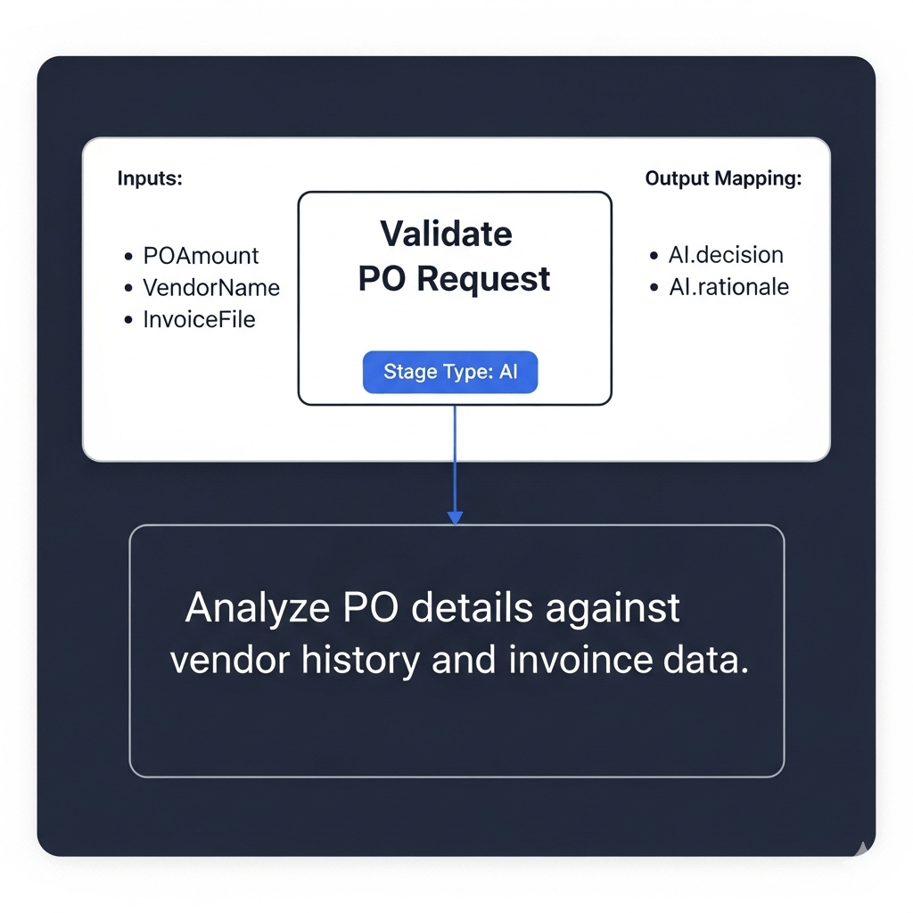 Think of the AI Stage as a digital gatekeeper that performs fast, deterministic checks before routing a PO for human review.